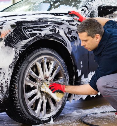 Our full detailing includes exterior wash, wax, tire shine, interior vacuuming, shampooing, leather conditioning, and odor removal.